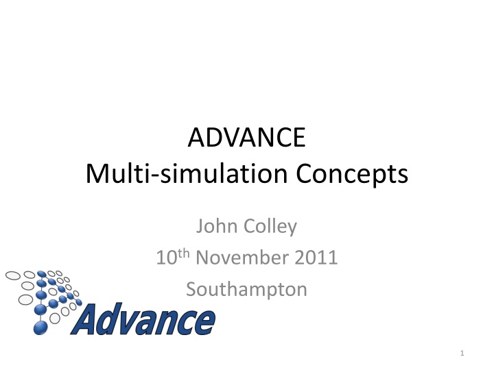 ADVANCE Multi-simulation Concepts John Colley 10thNovember 2011 Southampton 1