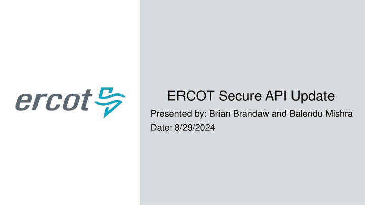 ERCOT Secure API Update Presented by: Brian Brandaw and Balendu Mishra Date: 8/29/2024