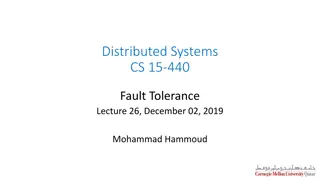 Explore fault tolerance in distributed systems, covering topics like Byzantine failures, high availability, and handling system faults. Learn about the importance, challenges, and advantages of fault tolerance for ensuring reliable and secure operations in distributed computing environments.