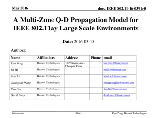The presentation by Huawei Technologies introduces a multi-zone propagation model for IEEE 802.11ay in large-scale scenarios operating in the 60 GHz band. It aims to address the diverse physical effects experienced by signals over long distances, complementing the existing Q-D channel model for more
