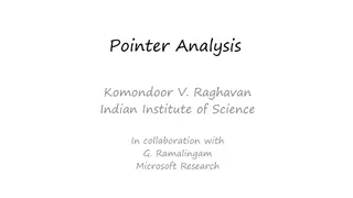 Explore the concepts of pointer analysis, points-to analysis, and constant propagation in programming languages. Understand how these techniques determine possible values, targets of pointer variables, and propagate constant values in programs. Dive into the complexities of dynamic memory allocation