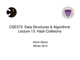 Explore the concepts of hash tables, hash functions, and collisions in data structures and algorithms. Learn how hash tables operate, the importance of hash functions, and how collisions are managed. Discover the key considerations when implementing a hash table for efficient data storage and retrie