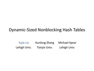 Learn about hash tables, hash functions, collision resolution techniques like separate chaining, and how to choose the right hash function for optimal performance. Discover key concepts and methods in hashing including direct access tables, dynamic hashing/rehashing, load factors, and more.