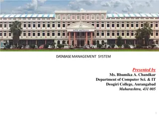 Explore the world of Database Management Systems (DBMS) through the insightful presentation by Ms. Bhumika A. Chandkar from Deogiri College, Aurangabad. Learn about the basics of DBMS, including its definition, components, and applications, along with examples of database mini-worlds and relationshi