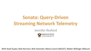 Explore the innovative Sonata project led by Jennifer Rexford and team, focusing on query-driven streaming network telemetry. Learn about the spark-like query language, query-driven collection and analysis, and compiling individual operators to enhance network management and security. Discover the p