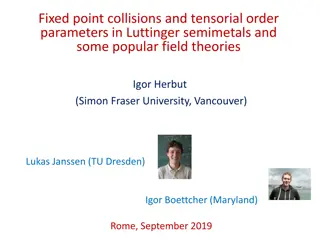 Exploring fixed point collisions and tensorial order parameters in Luttinger semimetals and various field theories, such as chiral symmetry breaking in QED and Interacting O(N) field theory. The research delves into the condensed matter motivation behind quadratic band touching and the Luttinger Ham