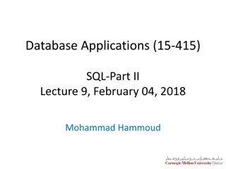 In this SQL lecture, Mohammad Hammoud covers nested queries, insertion, deletion, updates, handling NULL values, join variants, and advanced query techniques. Examples include finding sailors who have reserved specific boats, using nested queries to filter data, and deep nested queries for complex d