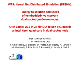 This study compares the energy efficiency and processing speed of ARM Cortex-A15-based NVIDIA Jetson TK1 boards and Intel Xeon-based dual-socket nodes for distributed simulation using DPSNN. The research, conducted by Pier Stanislao Paolucci at INFN APE Lab, focuses on optimizing performance trade-o