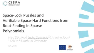Discover how sparse polynomials are utilized to address issues related to space-hard functions in various cryptographic scenarios such as Space-Lock Puzzles, Verifiable Delay Functions (VDFs), and Permutation Polynomials. Learn about techniques for resolving space-hardness problems, verifiable compu