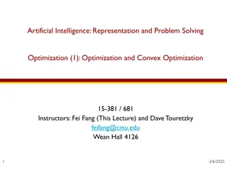 Explore the concepts of optimization and convex optimization in artificial intelligence, covering a variety of topics such as search, satisfiability, combinatorial and continuous optimization, and more. Delve into the definition of optimization problems, feasible regions, optimization objectives, an
