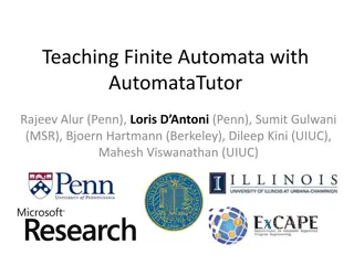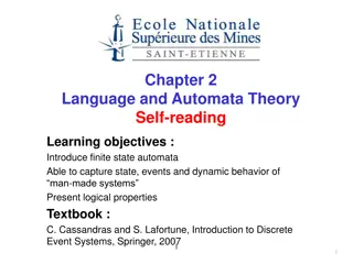 Explore the functionality of automata and state transitions using MATLAB TCT. Learn how different states and events impact the behavior of systems, such as cars, in a visual and interactive manner. Dive into the world of automata theory and state transition functions with these informative illustrat