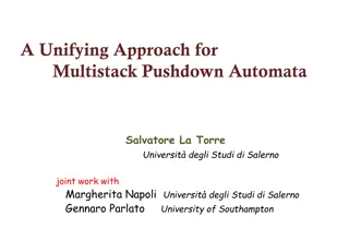 Explore the unifying approach for multistack pushdown automata, discussing aspects like finite control, stack operations, and concurrency modeling. Discover how restrictions enhance decidability and intersection closure, offering insights into language classes and automata theory applications.