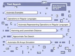 Dive into the world of text search algorithms using Nondeterministic Finite Automata (NFA), Deterministic Finite Automata (DFA), and explore the basics of indeterminism in automata theory. Learn about transitions, states, and processing words with NFA at work.