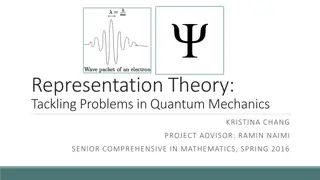 Dive into the world of quantum mechanics through the lens of representation theory, exploring solutions to Schrödinger equations, stationary states, and intrinsic symmetry. Discover how to translate quantum problems involving symmetry groups using linear algebra and group homomorphisms.