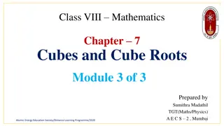 Explore the concept of cube roots and various methods for calculating cube roots such as prime factorization and estimation. Learn how to find the length of the side of a cube given its volume. Dive into examples and see how cube roots are the inverse operation of finding the cube. Gain insights int