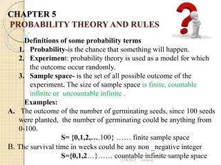 Probability is the proportion of successes in a long series of repetitions. Important ideas include the 0-1 Rule, the 100% Rule, the Complement Rule, the Addition Rule, and the Multiplication Rule. These rules govern the calculation of probabilities in various scenarios. Learn the fundamental princi