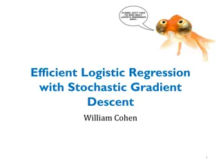 Explore the efficient implementation of Logistic Regression using Stochastic Gradient Descent by William Cohen. Learn about the optimization process, regularization techniques, and the importance of sparsity in the algorithm. Dive into the details of updating weights, handling non-zero features, and