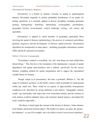 Explore the concept of spatial autocorrelation, its implications in geostatistical analysis, and the importance of detecting and interpreting it correctly. Learn about auto-correlation, signal components, correlation significance, and measuring autocorrelation using tools like Moran's I. Gain insigh