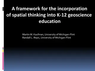 Explore a framework for integrating spatial thinking into K-12 geoscience education, focusing on improving spatial thinking, constructive geography, and spatial-temporal primitives. Discover how a place-based curriculum can enhance spatial understanding across various science disciplines.