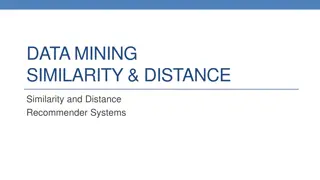 Exploring the concepts of similarity and distance in data mining for recommender systems. Learn how to quantify closeness between objects, measure similarity between sets, and understand Jaccard similarity. Discover how these principles are applied in various scenarios for data analysis and recommen