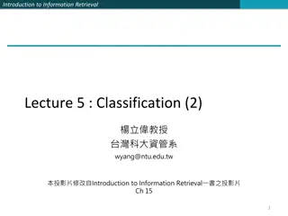 Learn about Support Vector Machine (SVM) in information retrieval, a machine learning method aiming to find maximal separation between classes. Explore the concept of maximizing margins, decision boundaries, and linear programming for effective classification.