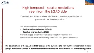 Explore how the LGAD and Resistive Charge Division (RSD) designs have revolutionized silicon detectors, enhancing temporal and spatial resolutions. Discover the collaborative efforts behind these innovations and the implications for sensor and ASIC systems. Uncover the secrets to achieving good temp