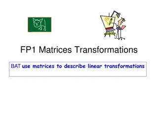 Explore how matrices can describe linear transformations and solve transformation problems by finding the image of points under specific transformations. Learn about properties of linear transformations, representing transformations with matrices, and transforming shapes using matrix operations.