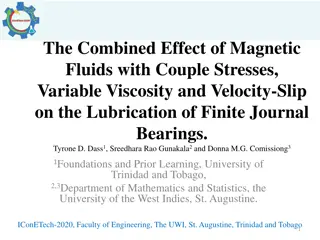 Study investigating the impact of magnetic fluids, couple stresses, variable viscosity, and velocity slip on the lubrication of finite journal bearings. The research focuses on pressure distribution, load-carrying capacity, and frictional coefficient in the context of tribology.