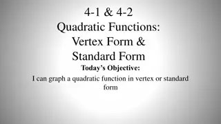 Today's objective is to graph quadratic functions in vertex or standard form. Learn about the vertex form, standard form, transformations, and how to plot parabolas with given equations. Understand how to find the vertex, axis of symmetry, and other key attributes of quadratic functions.