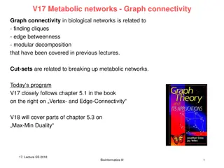 Understanding graph connectivity in biological networks is crucial for analyzing vulnerability and survivability. Explore concepts like vertex and edge connectivity, cut-sets, and network decomposition in V17 Metabolic Networks lecture series.