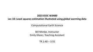 Explore how least squares estimation is applied in analyzing global warming data, understanding observed and predicted data, and evaluating goodness-of-fit through total error calculations. Models with unknown constants are used in curve fitting processes to derive meaningful insights.