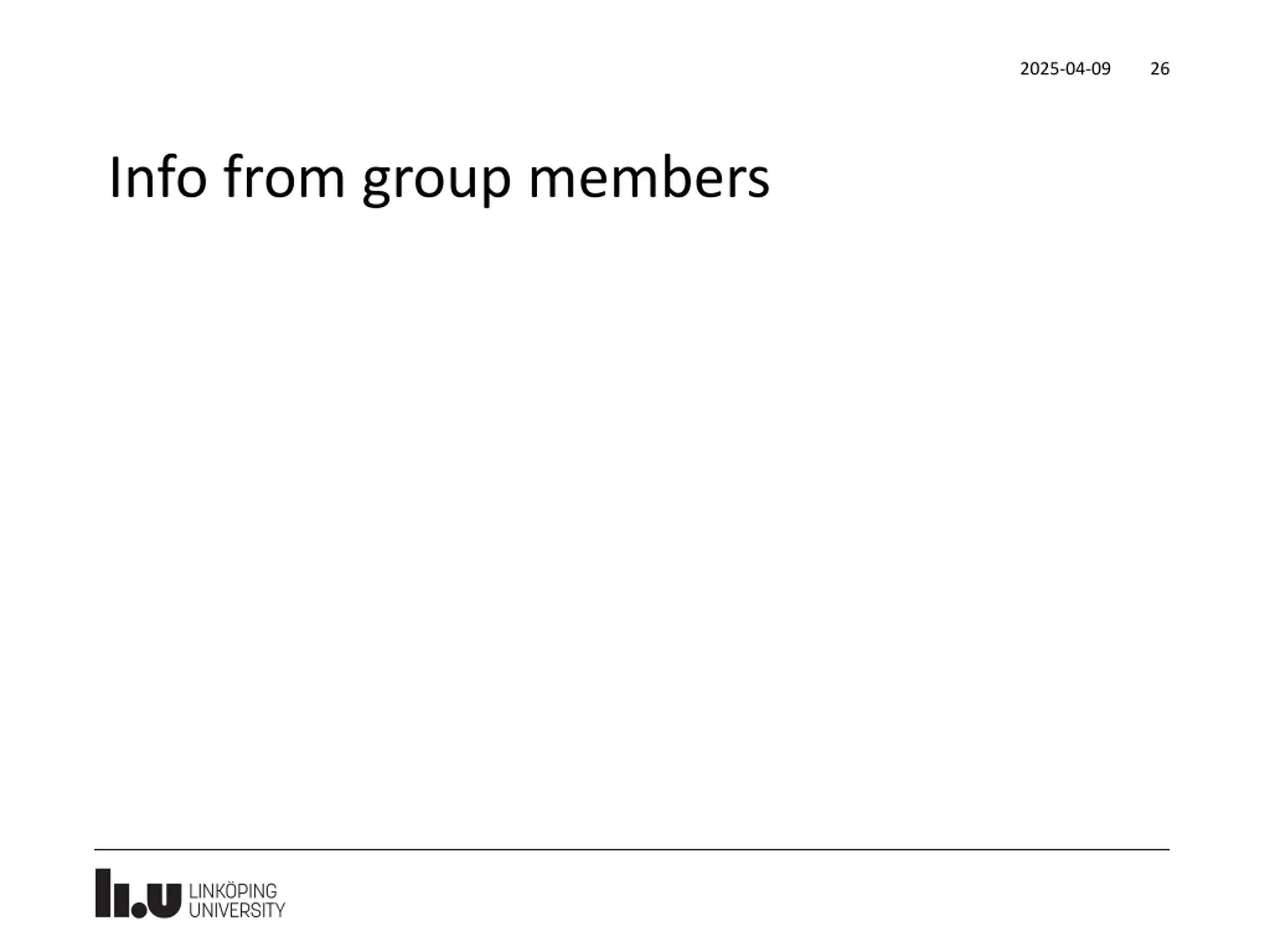 2025-04-09 25 DEMO PRESENTATION Work environment questionnaire - ADIT 33,34,36 Action points (from now, check next year) Attend IDA-level seminars from ADIT members. All Introduce rehearsal seminars for Networks/Security (already at Semantic Web). Andrei/Niklas. Check possibility to write papers together. Supervisors. ADIT workshop. Patrick. After covid.