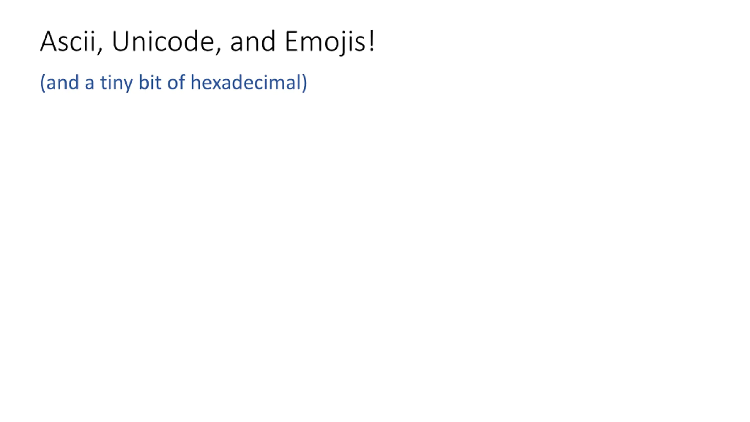 Ascii, Unicode, and Emojis! (and a tiny bit of hexadecimal)