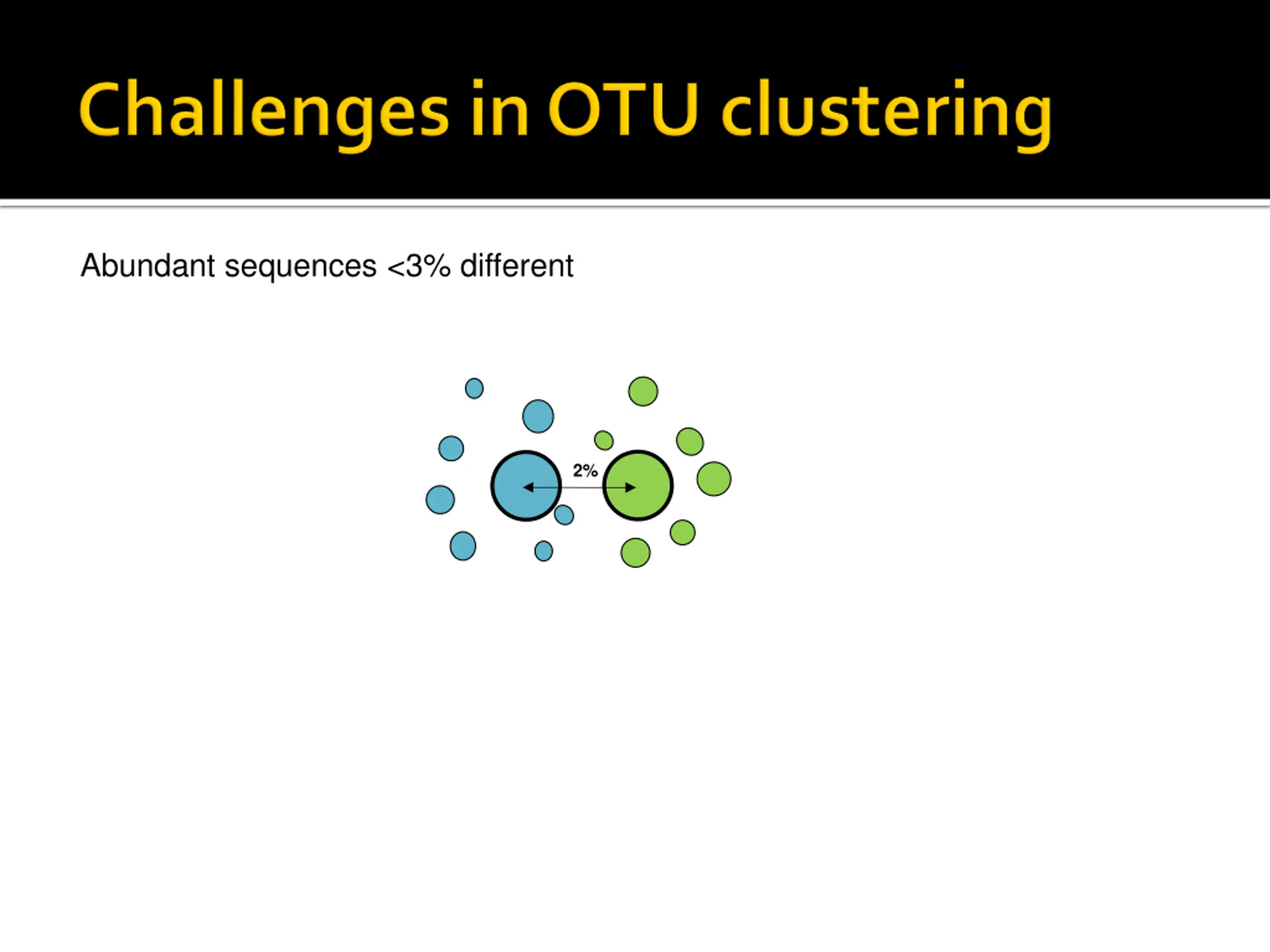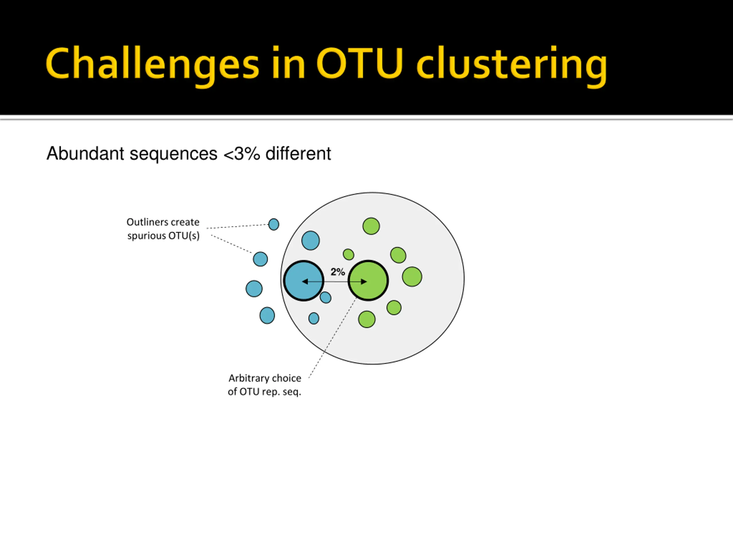Abundant sequences <3% different Outliners create spurious OTU(s) 2% Arbitrary choice of OTU rep. seq.