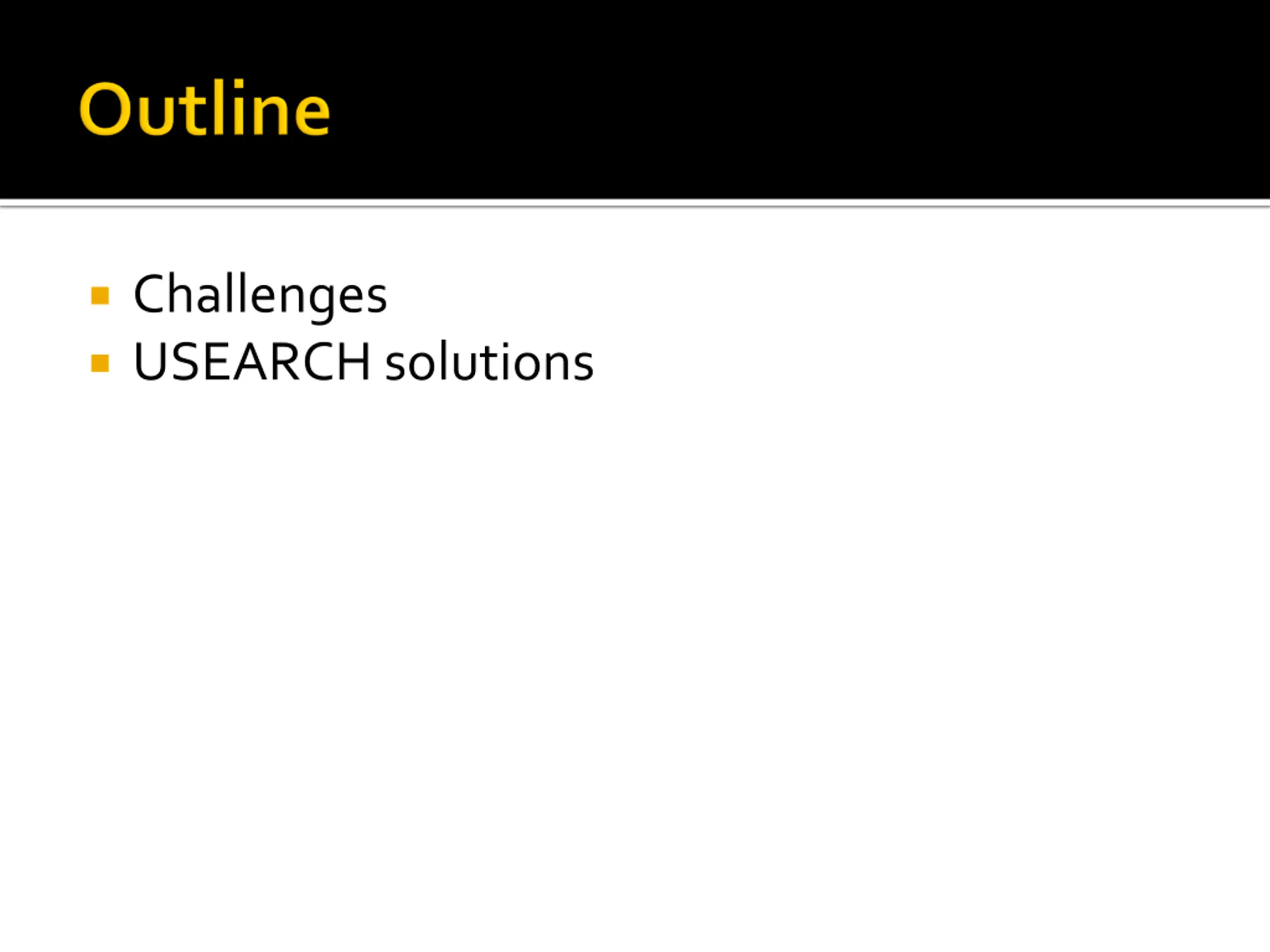 Not like QIIME or mother Not a complete suite of analysis tools Not "packaged" specifically for 16S Lower-level algorithms Typically used by "pipelines" Multiple steps Typical step is USEARCH command or file conversion Implemented by scripts (bash, perl, Python...).