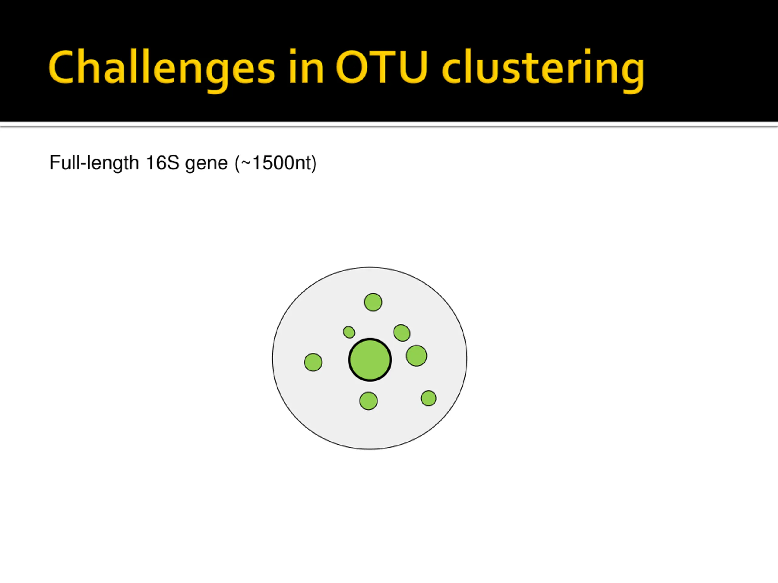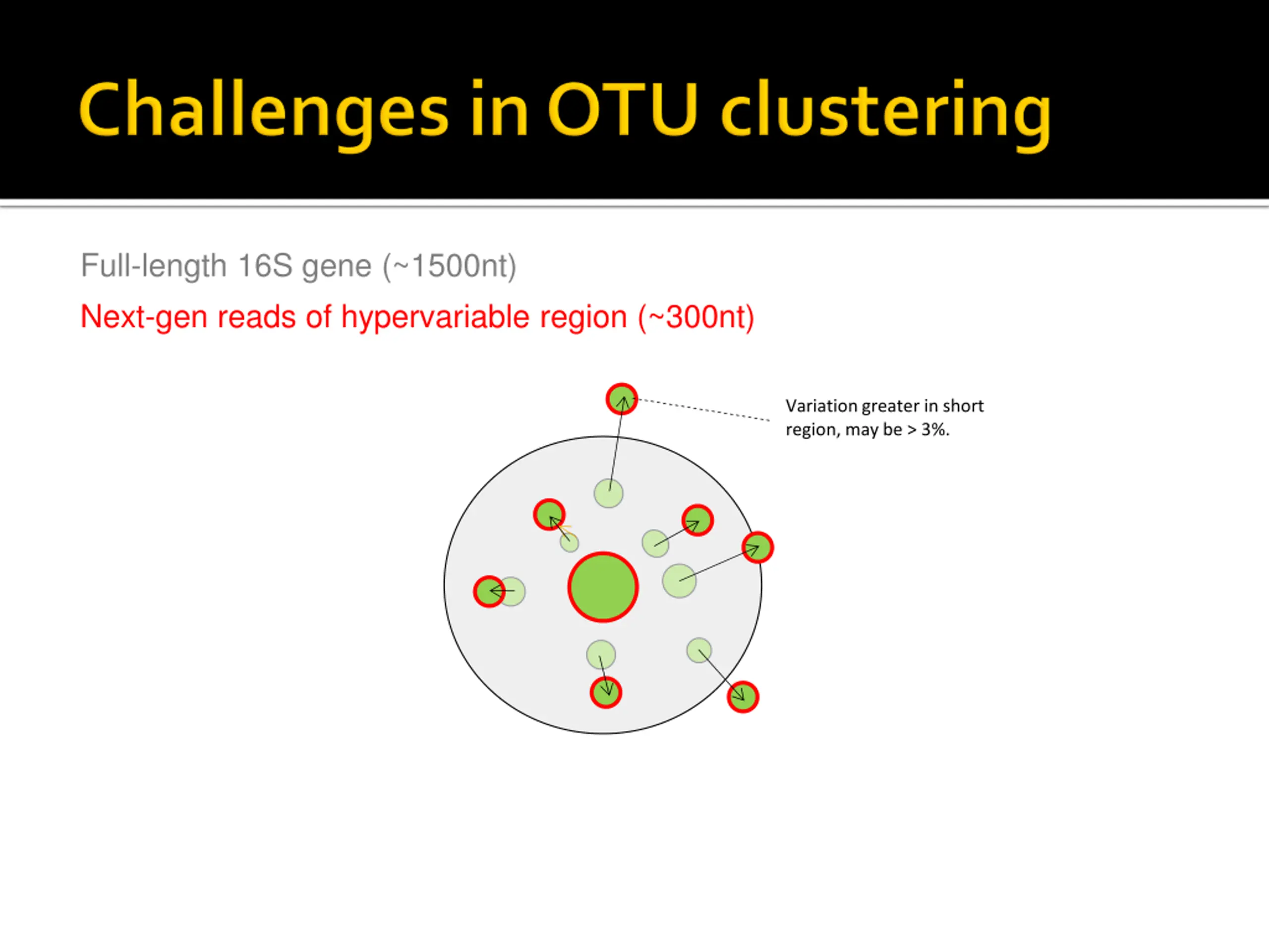Full-length 16S gene (~1500nt) Next-gen reads of hypervariable region (~300nt) Variation greater in short region, may be > 3%.