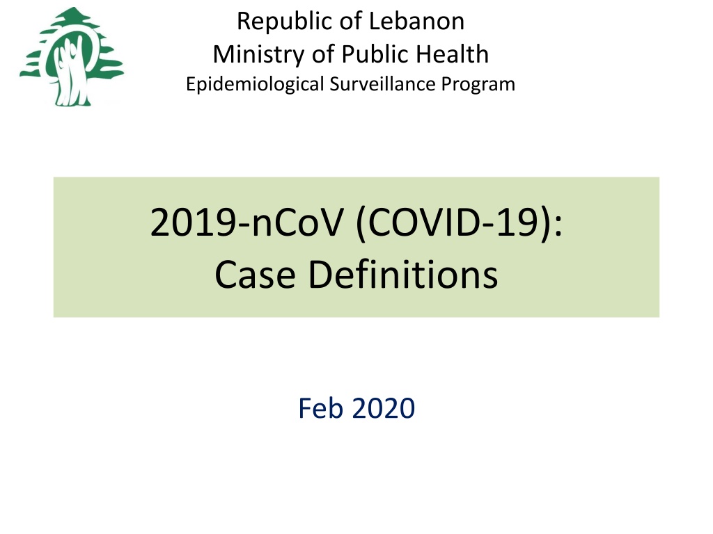 Republic of Lebanon Ministry of Public Health Epidemiological Surveillance Program 2019-nCoV (COVID-19): Case Definitions Feb 2020