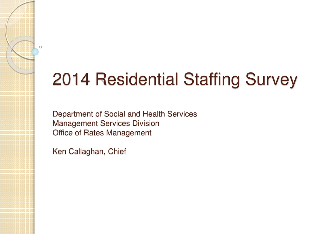 2014 Residential Staffing Survey Department of Social and Health Services Management Services Division Office of Rates Management Ken Callaghan, Chief