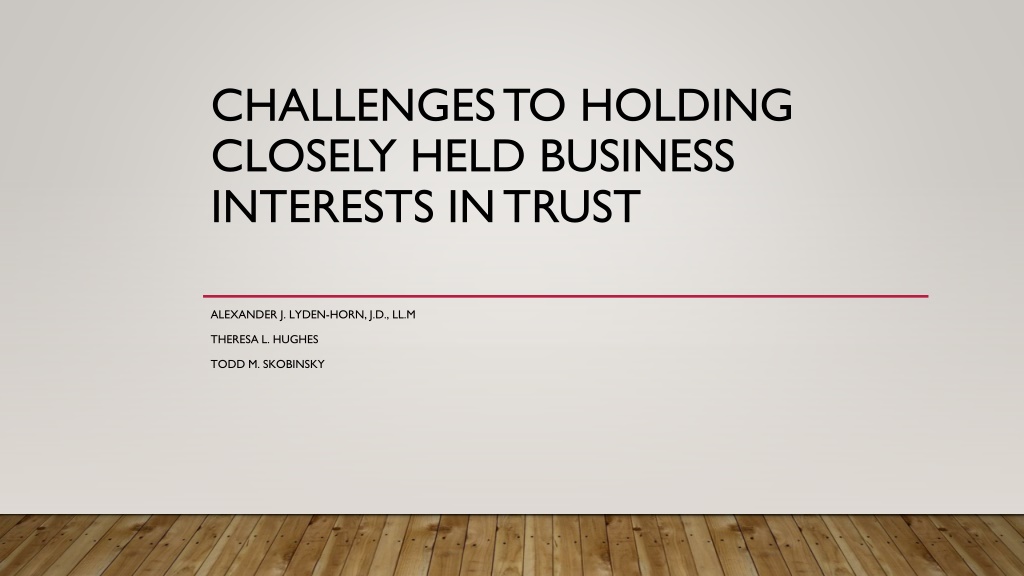 CHALLENGES TO HOLDING CLOSELY HELD BUSINESS INTERESTS IN TRUST ALEXANDER J. LYDEN-HORN, J.D., LL.M THERESA L. HUGHES TODD M. SKOBINSKY