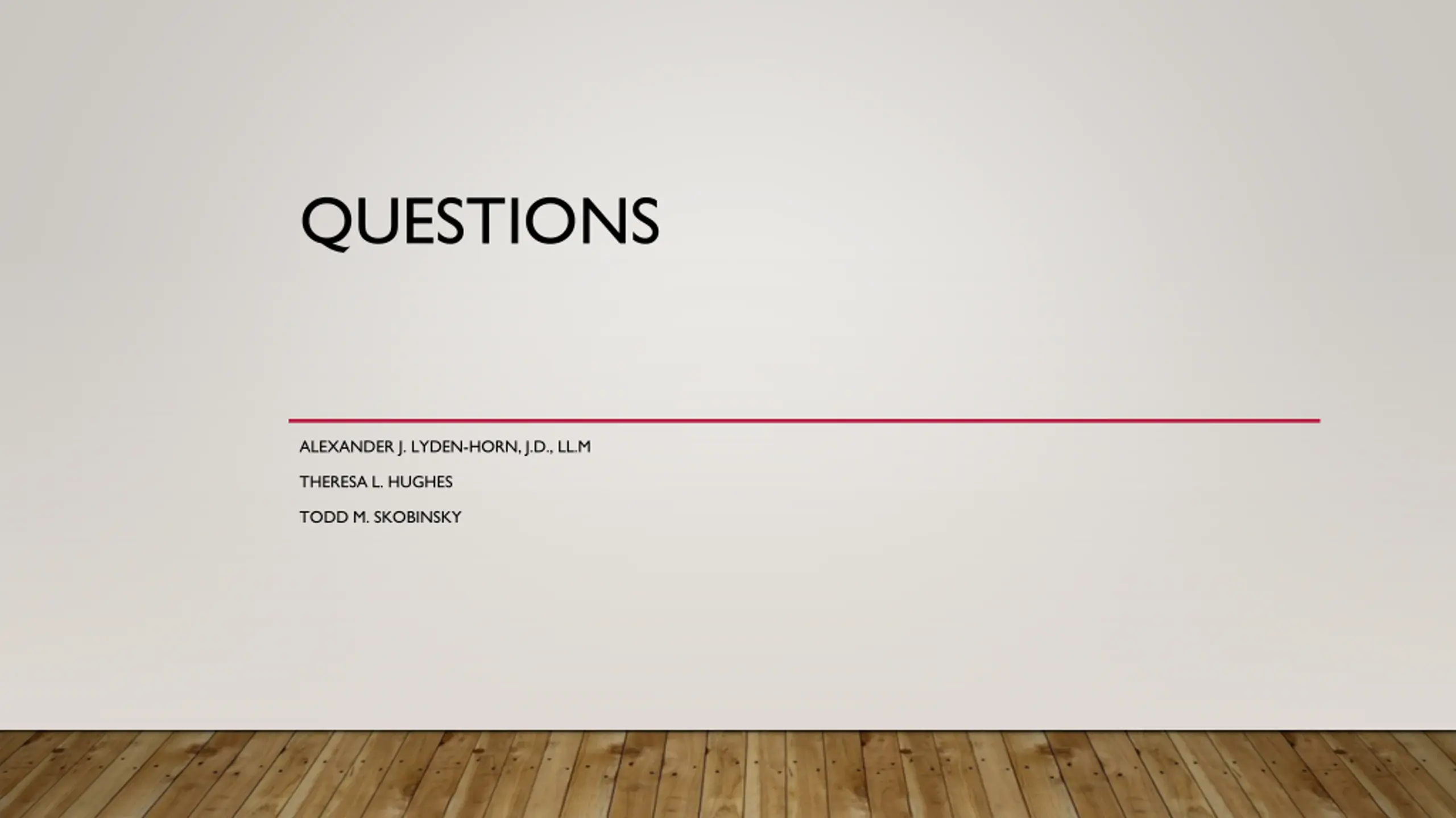 QUESTIONS ALEXANDER J. LYDEN-HORN, J.D., LL.M THERESA L. HUGHES TODD M. SKOBINSKY