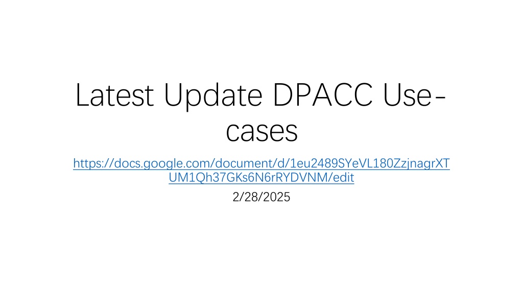 Latest Update DPACC Use- cases https://docs.google.com/document/d/1eu2489SYeVL180ZzjnagrXT UM1Qh37GKs6N6rRYDVNM/edit 2/28/2025