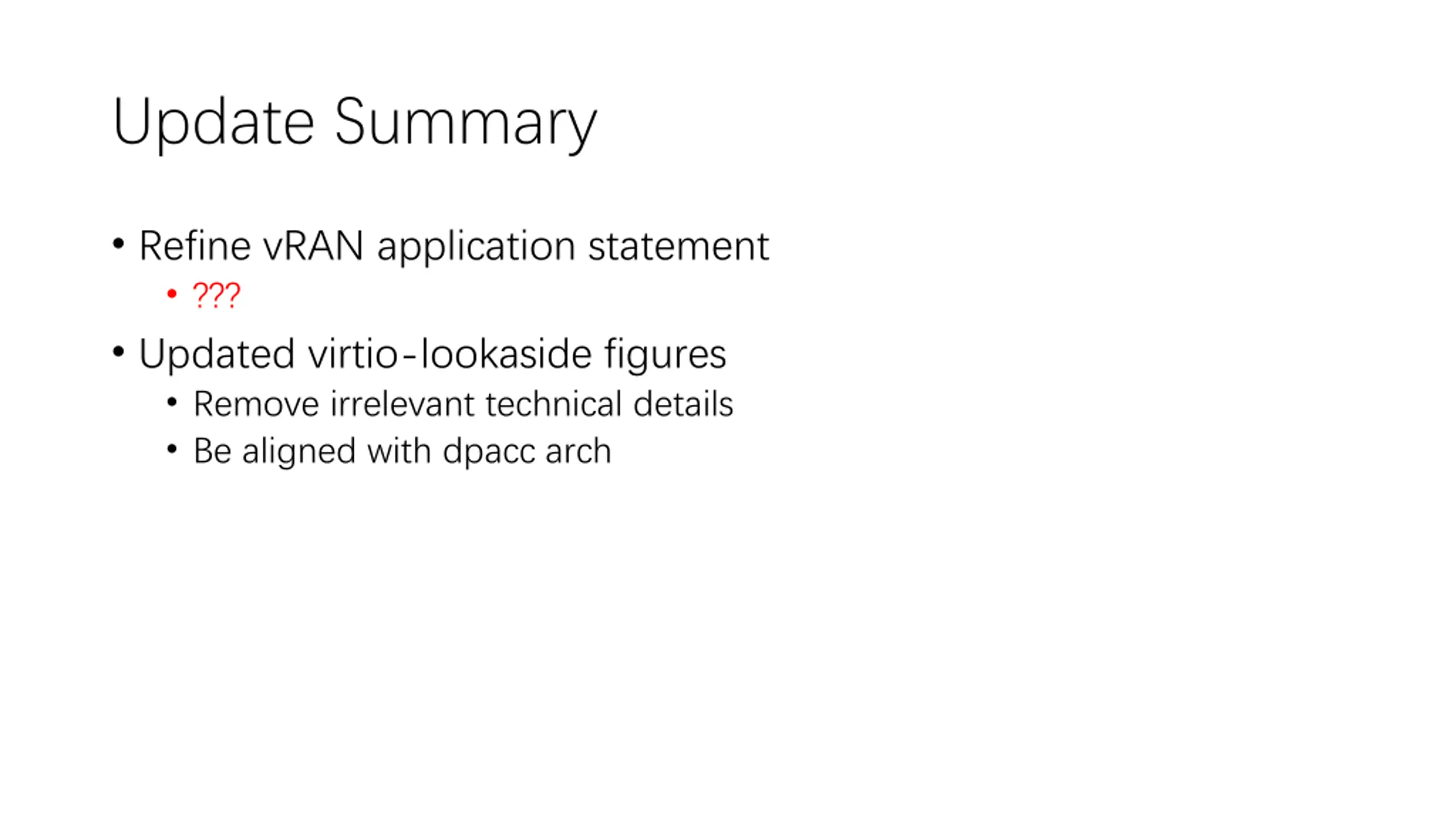 Update Summary Refine vRAN application statement ??? Updated virtio-lookaside figures Remove irrelevant technical details Be aligned with dpacc arch