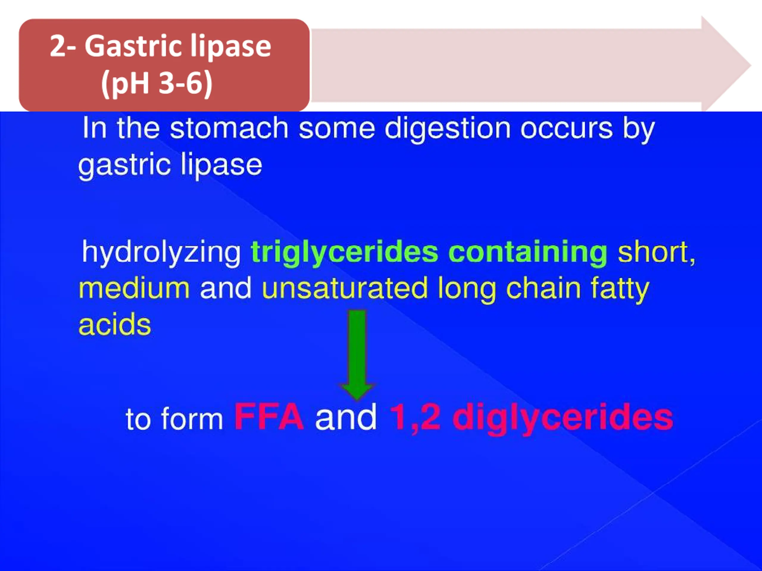 1- Lingual lipase secreted by the dorsal surface of the tongue (Von-Ebner s glands) Is not of much significance in humans compared to rat or mouse