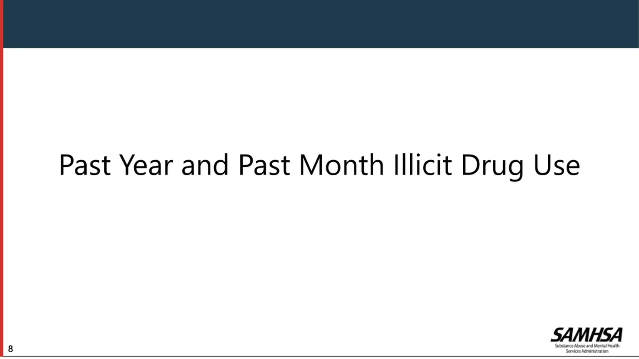 Suppression Due to Low Precision The following estimates for NHOPI people are not presented due to low precision: Substance use past month: binge alcohol, tobacco product, or nicotine vaping past year: pain reliever, heroin, or opioid Substance use disorder (SUD) by age groups or severity level Perceived need for substance use treatment Major depressive episode, mental health treatment, or suicidal thoughts or behaviors among adolescents Receipt of mental health services, co-occurring SUD and any mental illness (AMI), substance use by mental illness, perceived recovery, and receipt of substance use treatment or mental health services among adults 5