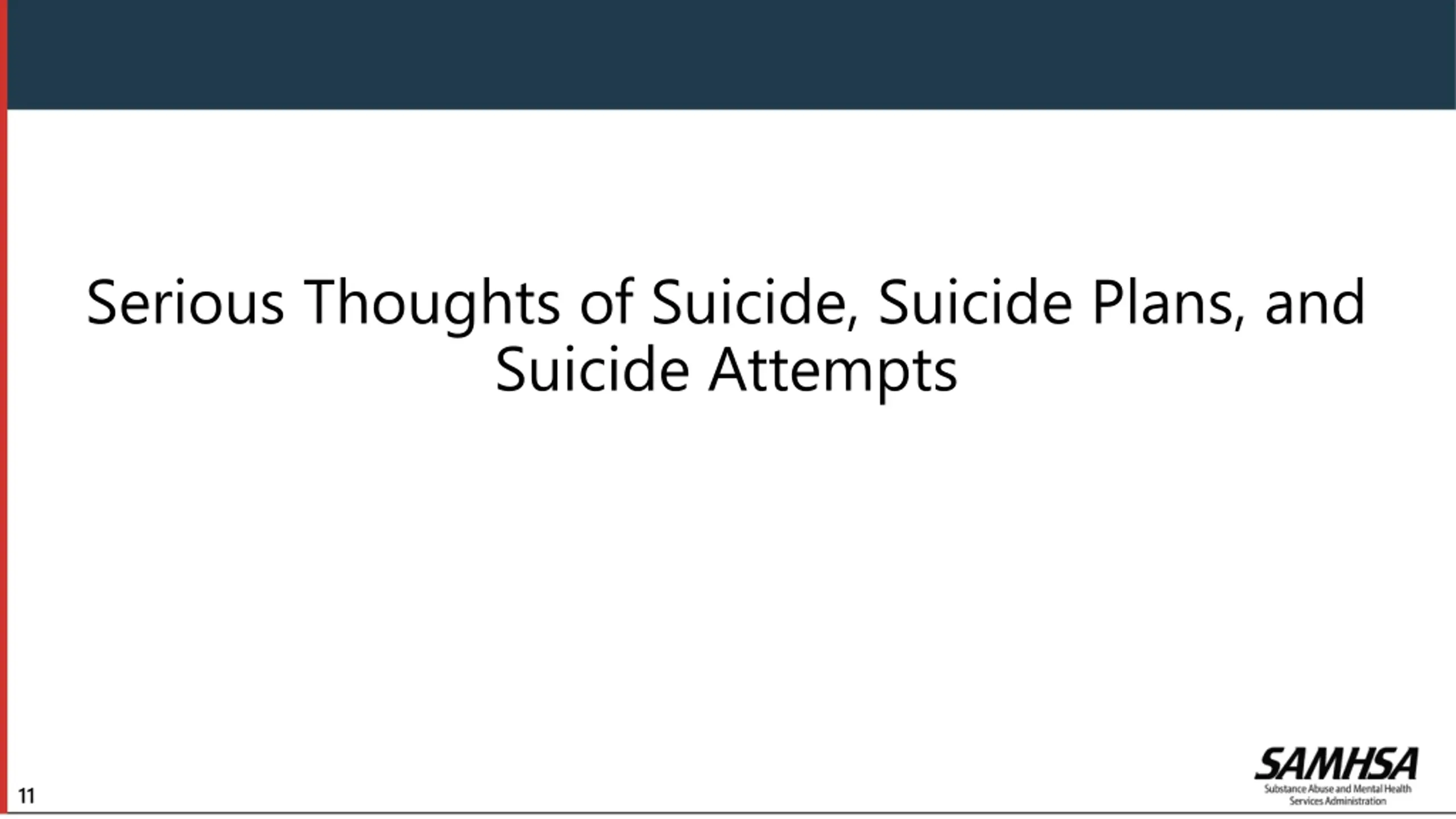 Serious Thoughts of Suicide, Suicide Plans, and Suicide Attempts 11