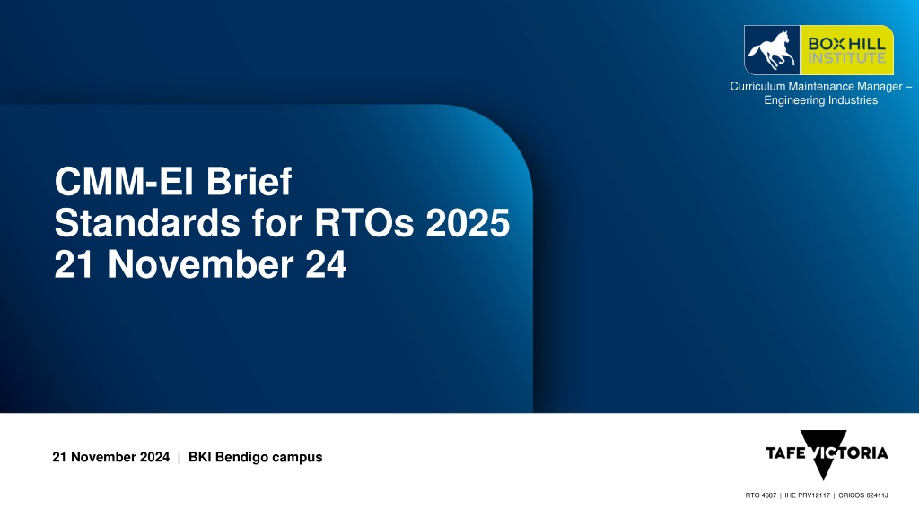 OFFICIAL Curriculum Maintenance Manager Engineering Industries CMM-EI Brief Standards for RTOs 2025 21 November 24 21 November 2024 | BKI Bendigo campus RTO 4687 | IHE PRV12117 | CRICOS 02411J OFFICIAL