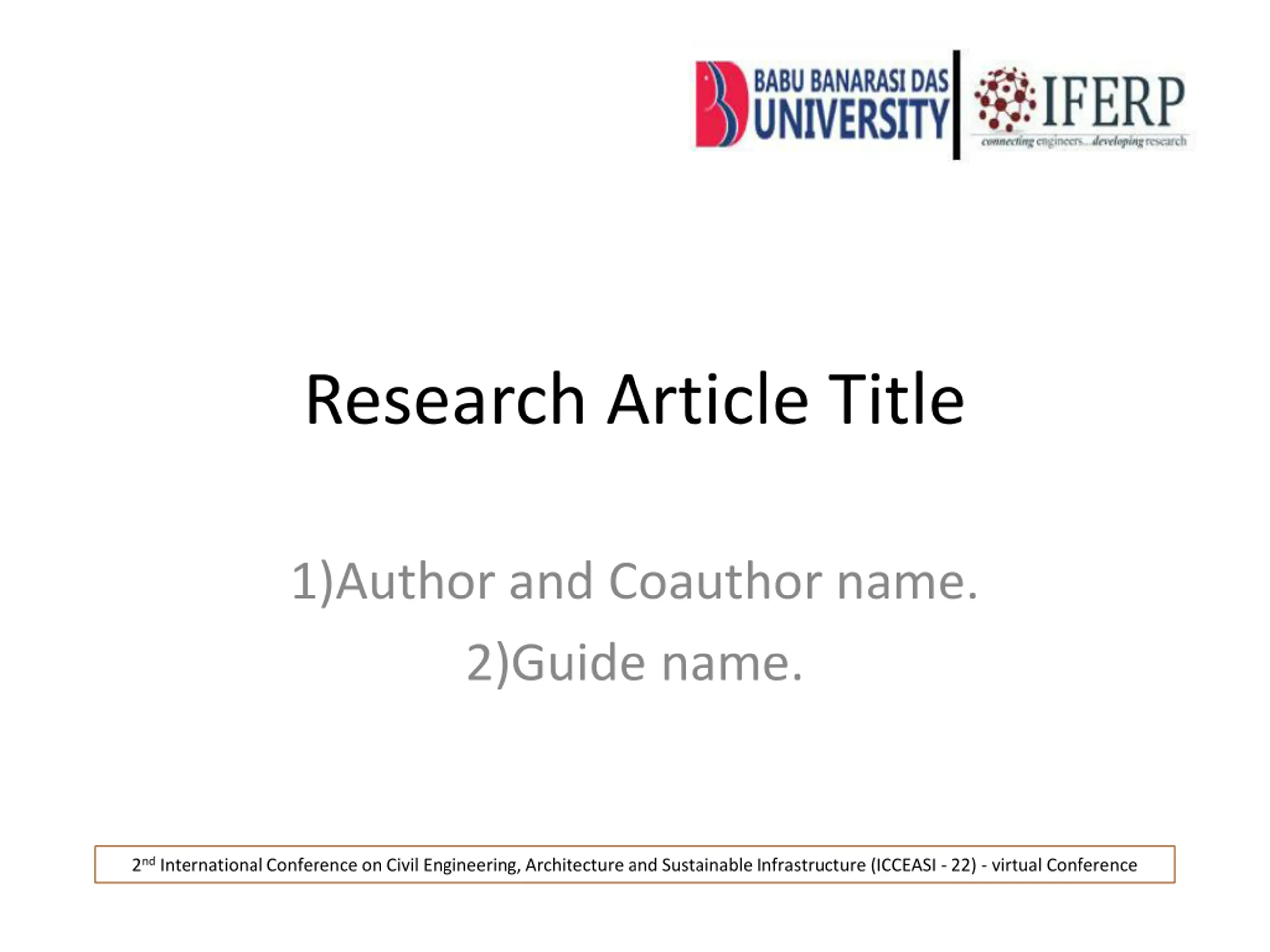Research Article Title 1)Author and Coauthor name. 2)Guide name. 2nd International Conference on Civil Engineering, Architecture and Sustainable Infrastructure (ICCEASI - 22) - virtual Conference