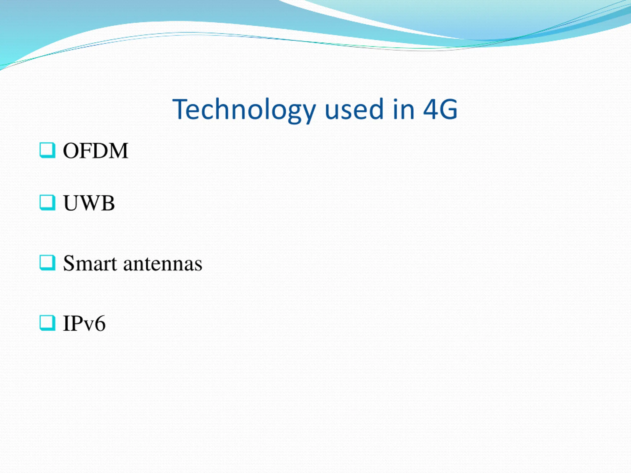 Technology used in 4G OFDM UWB Smart antennas IPv6