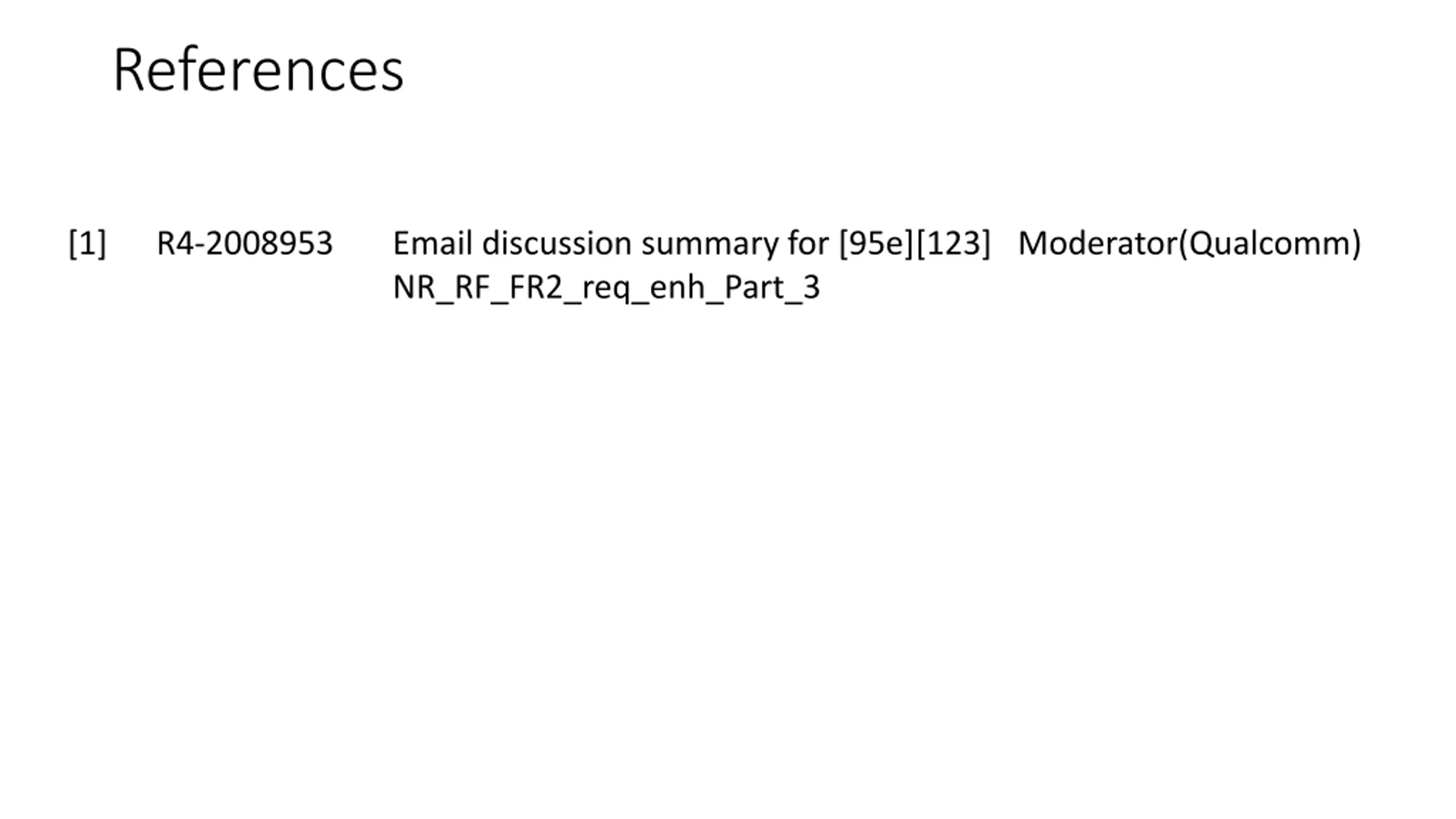 References [1] R4-2008953 Email discussion summary for [95e][123] NR_RF_FR2_req_enh_Part_3 Moderator(Qualcomm)