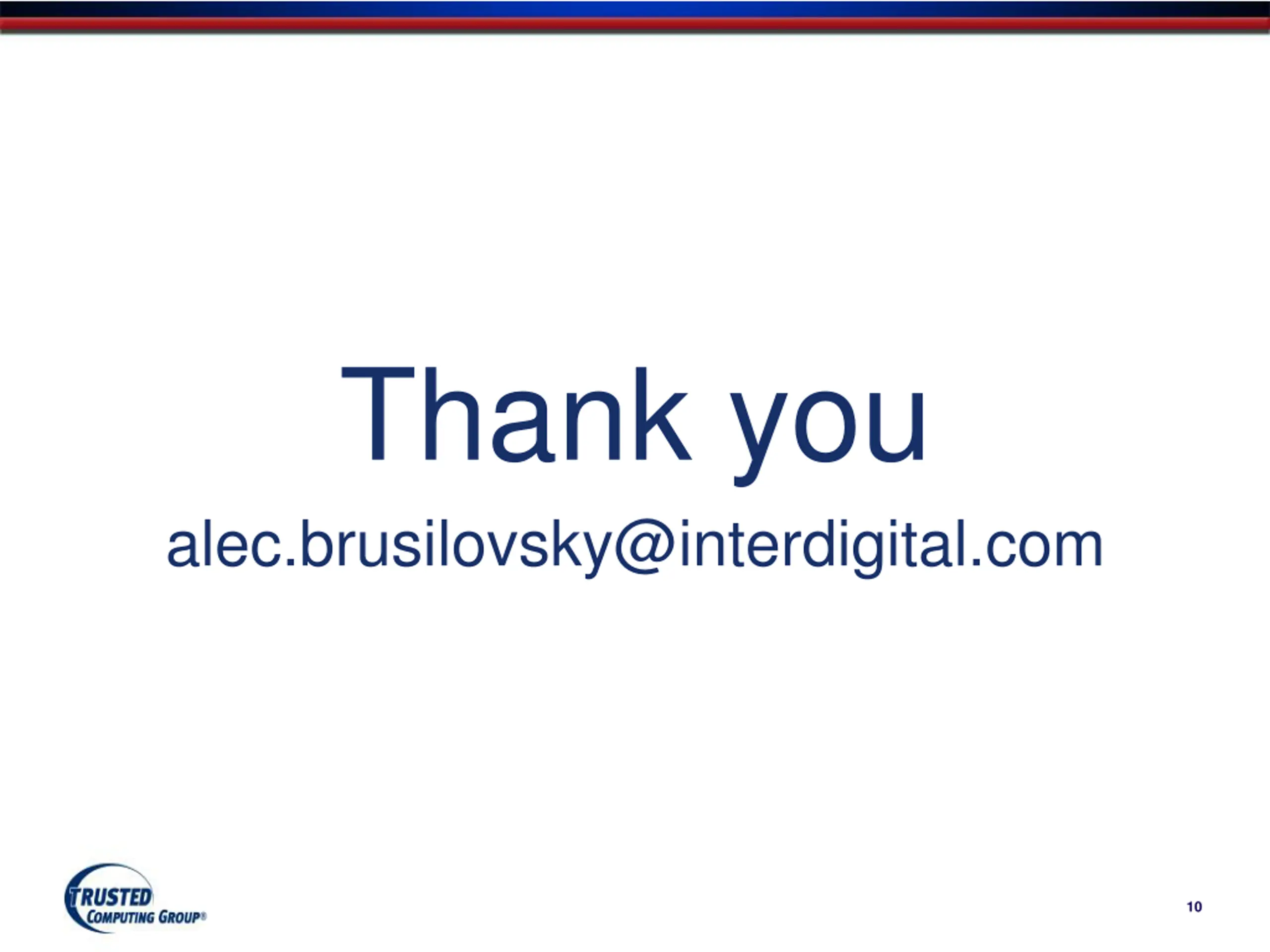 5G Security standardization methodology 5G security is not a quantitative (or incremental to 3/4G) matter. It cannot be primarily propelled by increased bitrates, decreased latency, and other quantitative aspects The level of 5G security is not defined by the number of specified security mechanisms Trying to address all possible requirements of every stakeholder in the same network could lead to a reduced security level, or to a solution with convoluted security A well-designed, flexible security baseline, and assurance in the implementation of this baseline will be more important than the number of security requirements Network slicing, relying on such baseline, will increase overall 5G security, allowing different slices to implement only security mechanisms that are germane for that particular network slice/service. Network slicing may be practically achieved only by implementing NFV/SDN. Platform Integrity and Trusted Computing techniques (i.e., Root-of-Trust, Attestation, and Secure Storage are preconditions for Secure Virtualization.) A multi-stakeholder approach involving operators, vendors, regulators, policy-makers and 5G users (e.g., industry segments) is fundamental to the security baseline of trustworthy, cost-efficient and manageable 5G networks Pre-standardization consensus building, such as joint research by the different stakeholders, will be essential. No single SDO (e.g., ETSI, ITU, 3GPP, oneM2M, etc.) will be able to standardize 5G security. Creation of collaborative SDO ecosystem is vital to success of 5G Security: 3GPP Network security ETSI NFV Virtualization security ITU-T Comprehensive security studies and standardization TCG Trusted computing standards 9